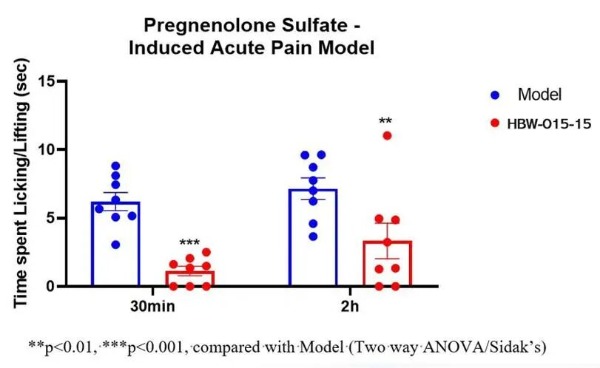 图1:HBW-015-15在PS诱导的小鼠急性疼痛模型中的药效研究