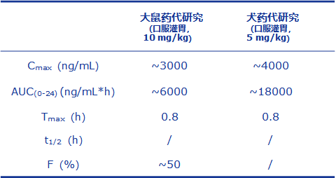 由表1可知,通过口服给药,HBW-015-15在大鼠及犬上具有良好的药代动力学特征,且在大鼠体内的生物利用度达到50%。